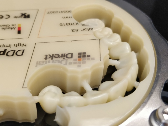 Celokeramické náhrady a provizorní náhrady frézujeme na vlastní fréze Roland DWX-52DCi. Používáme ZIRKON a PMMA od firmy DentalDirect.